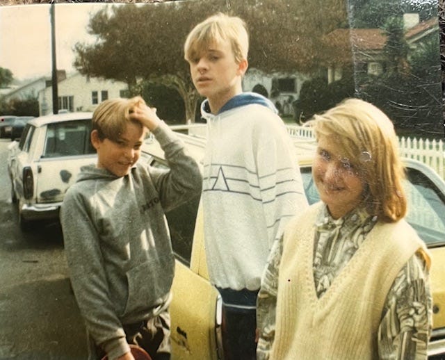 Star had to wear a headgear after school and at night. A navy blue strapped torture device that went over her head and locked into her braces with metal hooks. It left the corners of her mouth raw and crusty. I felt sorry that she had to wear it and was so uncomfortable. Her parents were divorced. Her dad’s girlfriend was Australian and designed clothes for Esprit, so Star’s wardrobe was enviable. I couldn’t get my dad to buy me anything at that store and I coveted all of it. The store was on Santa Monica Boulevard in the building of what was an old roller disco that had formerly been Flipper's Roller Boogie Palace that attracted an eclectic mix of drag queens, punks, and disco freaks. My dad took me to the Esprit store once, it was a big grey raw concrete building with brightly colored metal railings. I wanted everything, the sweatshirt with pastel letters, the rayon prints, the tote, and we left empty handed.