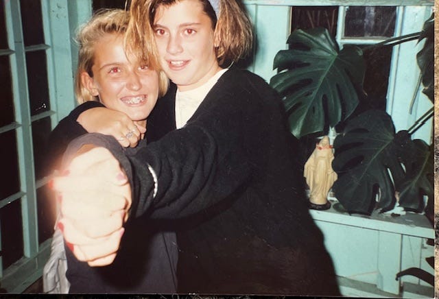 It must have been Fall in Hollywood. A season made distinct by its dryness and lack of green on the hillsides. I was wearing a sweater my grandmother knit me out of scratchy acrylic yarn. It was navy blue with yellow dots and a big koala bear clinging to a tree trunk. She copied it from one Princess Diana wore. I mostly wore it because I felt an obligation to wear the things she made me with such care. Star and I were standing in the small concrete courtyard of the Girl's Club where we each went after school. I remember standing on top of a picnic table in my own kid world, and then suddenly she was there and I am looking down at her face. There was one tree with tiny leaves. She had braces and blonde hair that ended at the top of her shoulders, long bangs. She had a child’s body then, a small chest and no waist- our little girl bellies. I’m not sure how we started spending all of our time together, but something was sealed that day, in spite of the fact that we went to different schools. Recently I asked her what she knew about my mom and why I moved in with my dad in Los Angeles the year we met, as a way to learn what I might have shared or known myself at that time. She said that I told her that my mom went crazy. I wonder who had told me that, or how I already knew to easily associate that word with women.